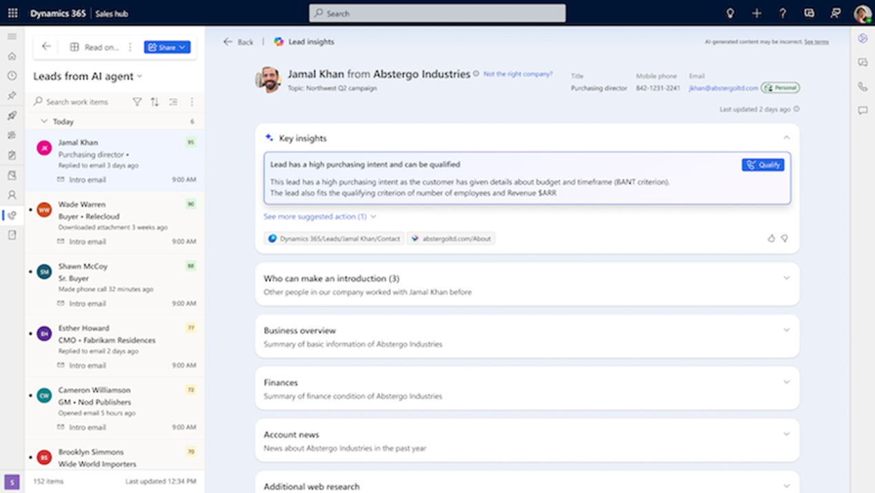 Agents and sales leads can query Copilot for customer insights like lifetime value, recent activity, and how likely they are to buy - right in their workflow.