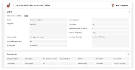 - Structured documentation templates on group and local (entity, plant, etc.) level so you can easily collect & harmonize the definition for certain KPIs at a component level