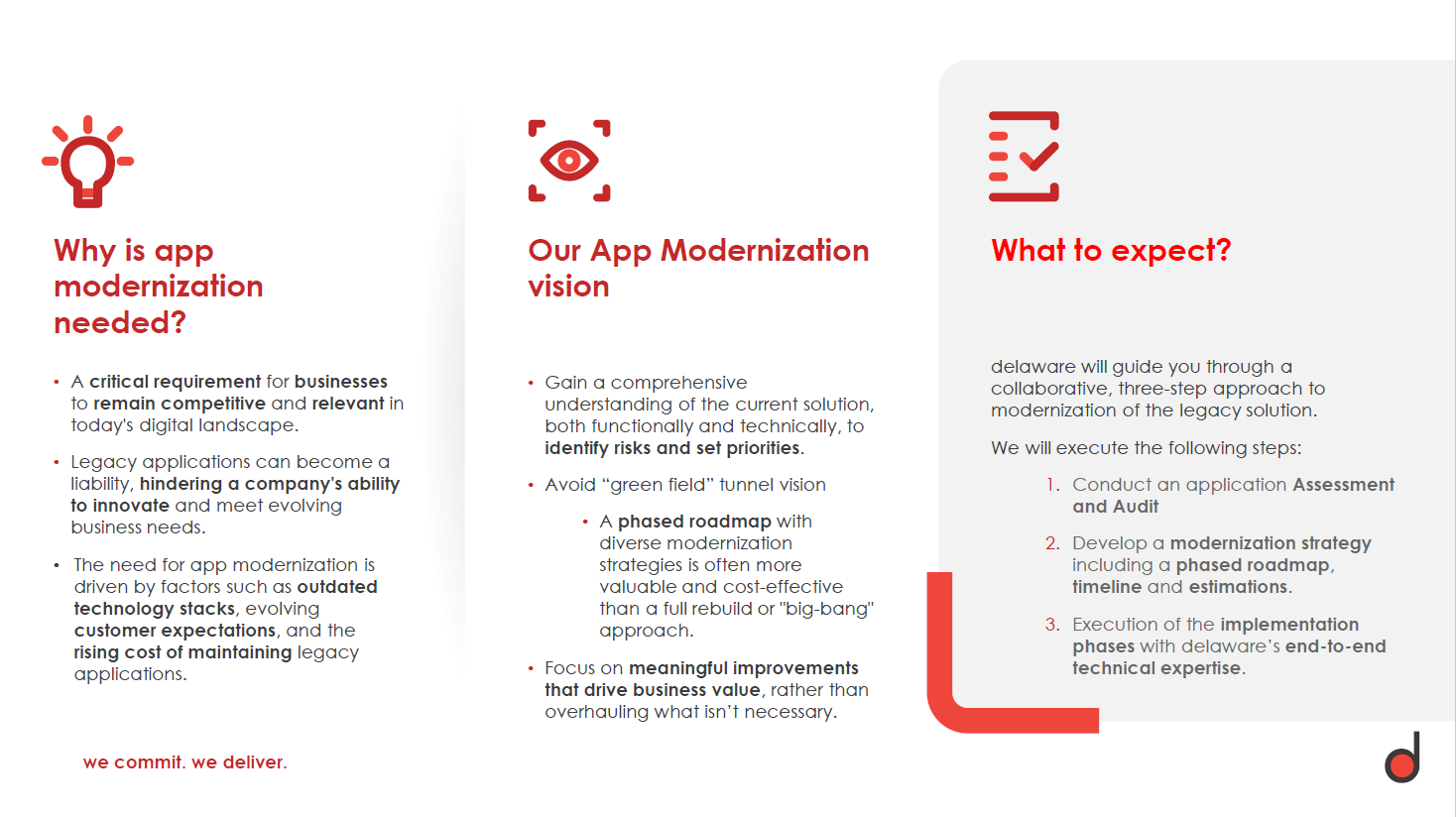 Modernizing your organization’s applications and moving toward a future-proof solution can significantly improve security compliance, scalability, performance, maintainability, and reduce operational IT costs.
