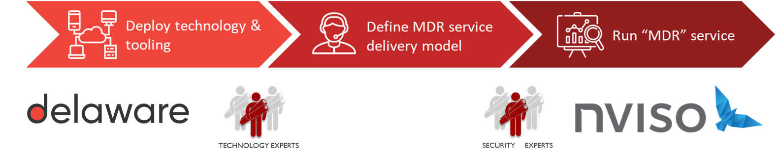 In a second phase our the service delivery model will be defined, so that our managed detect and respond service is integrated within your organization. In order to hit the ground running, we have a predefined delivery model which will be tailored to your organization and plugged into existing processes at your end (e.g. vulnerability management, incident response process,)