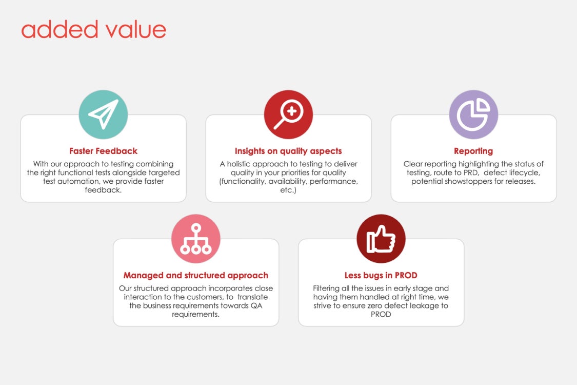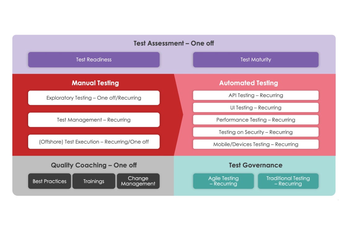 Testing should cater and cover all the quality aspects of a product. Our wide offerings and stellar approach to testing/test management, helps customers to have their product tested end to end with right coverage, on schedule, scalable and many more.
