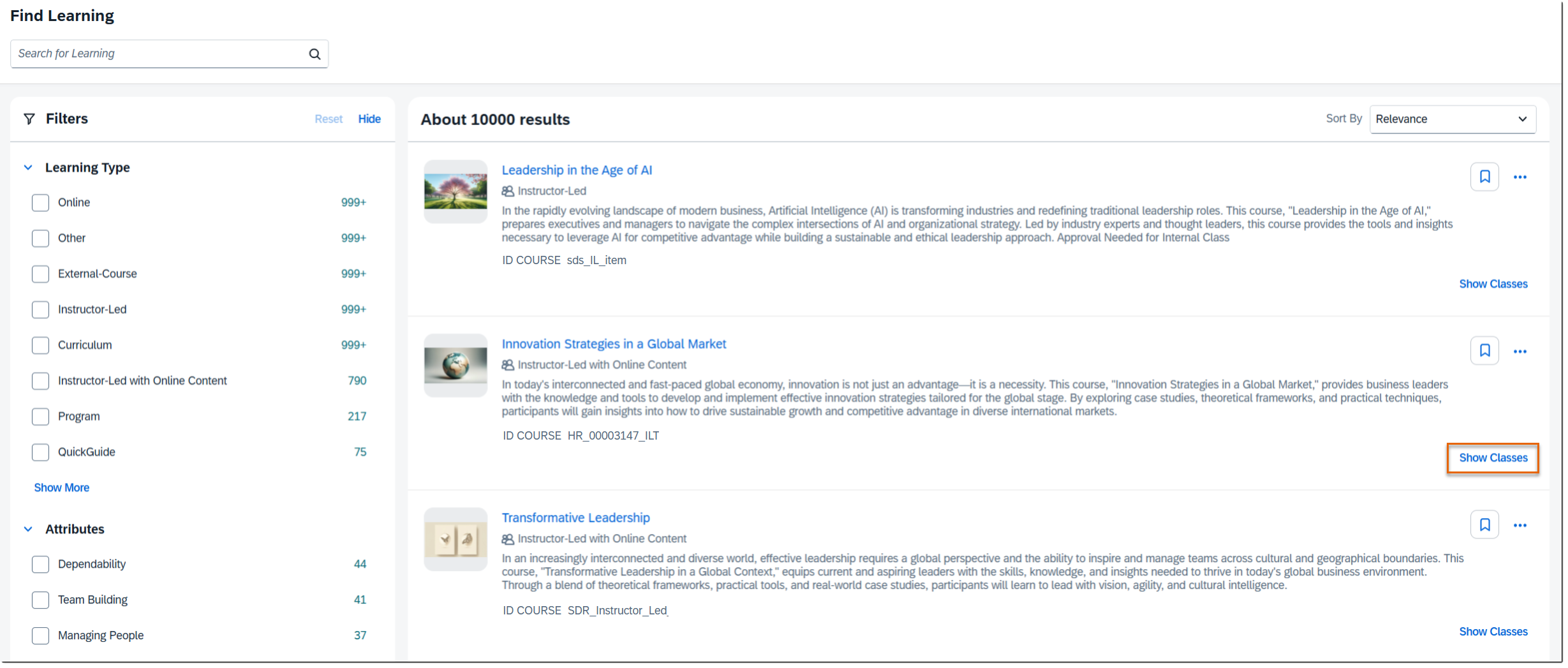 • For learners, smarter search experience and dynamic upcoming-class listings make discovering and enrolling in training easier.