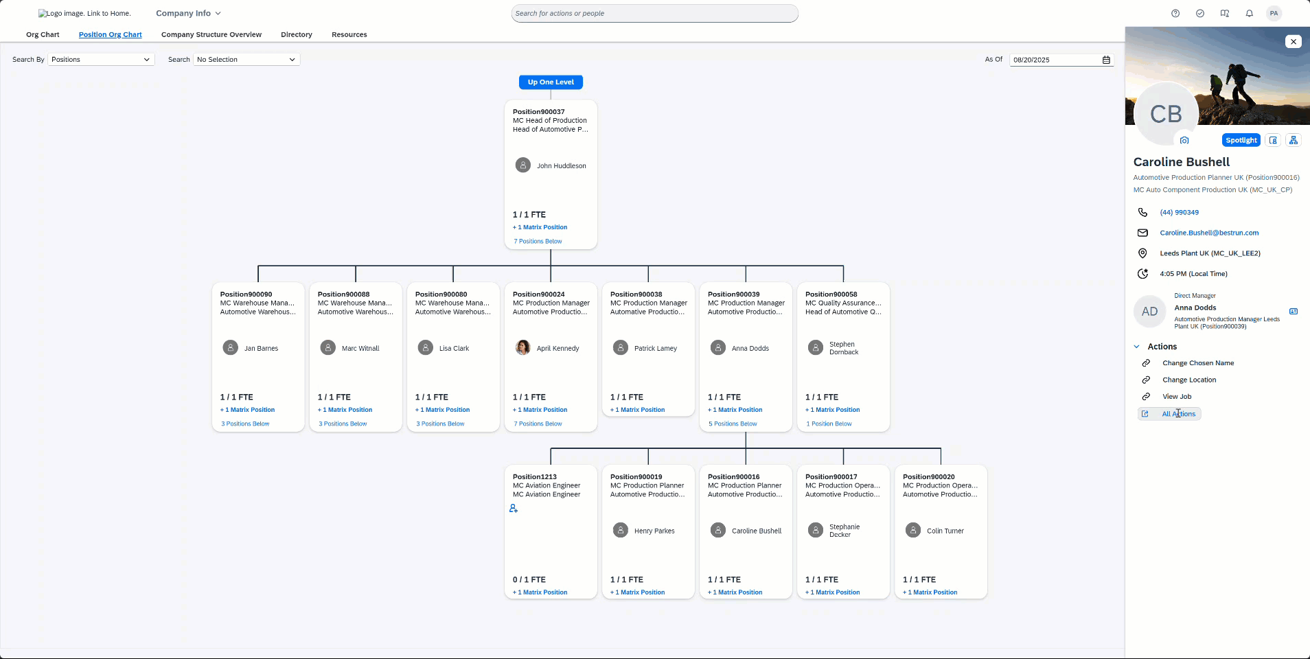Managers gain greater control over team structures with Quick Actions for position changes improved hierarchy-adaptation limits and enhanced termination import handling.